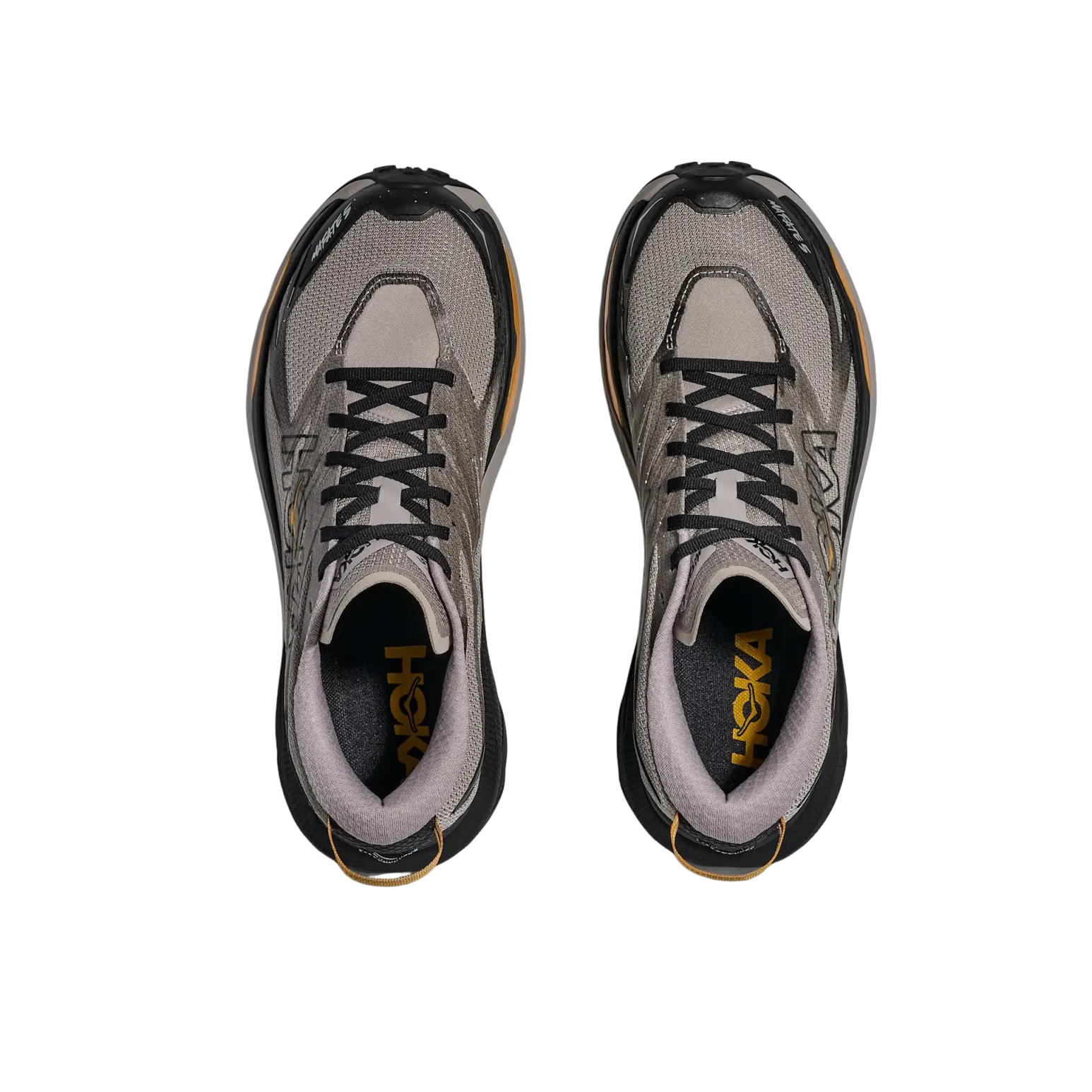 The Hoka Mafate Speed 5 Blue / Black Mens features a fresh bottom unit with Rocker Integrity Technology and a protective new upper with optional gaiter integration.